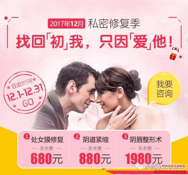 我院修复处女膜有2种方法,一种采用的是普通的手术材料,术后效果得不到保证,且术后需要拆线,如果一不小心还易造成处女膜再次破裂;另一种是韩式微雕处修术:采用韩国进口的纳米自吸收缝合线,术后无需拆线,手术成功率不仅提高,还降低了拆线时感染等风险。